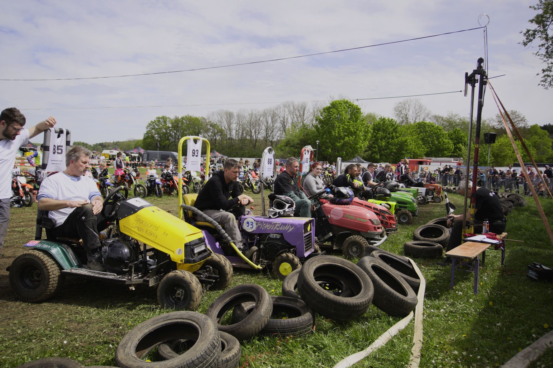 Besonders die fünfzehn Rennrasenmäher boten mal wieder ein ganz besonderes Spektakel. Es musste zum Abschluss ein separater Entscheidungslauf um Platz zwei durchgeführt werden, da vier Fahrer punktgleich waren. Die Beiwagenklasse luftgekühlt war mit sieben Gespannen mal wieder sehr stark besetzt. Die Mofas und Mopeds waren ebenfalls mit Rekordstarterzahlen gemeldet und sorgten für jede Menge Aktionen auf der Rennstrecke. Die Kinder standen den Erwachsenen in nichts nach und waren ebenso hoch motiviert in ihren Läufen. In den beiden Kinderklassen war auch eine Rekordbeteiligung am Start.
