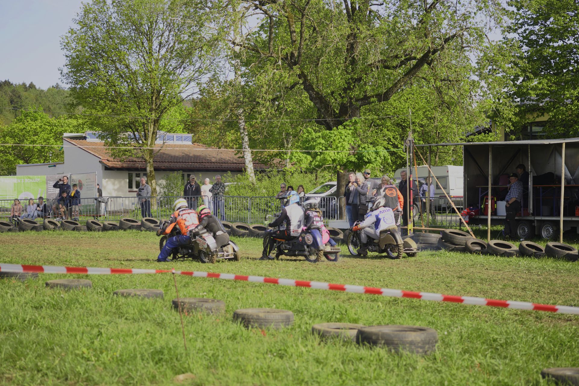Direkt neben der Festhalle Wetzisreute erklangen am Rennwochenende Samstag, 27.04. und Sonntag 28.04.2024 die Motorensounds von Rennrasenmähern, Kinder- und Jugendmotorrädern, Simsonmopeds mit und ohne Beiwagen, Mofas und Mopeds.